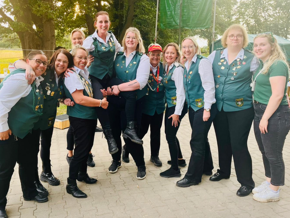 Das 50-jährige Jubiläum des Damenzuges stand unter einem guten Stern. Bei goldenem Oktober-Herbstwetter und ausreichender Beteiligung wurde das Jubiläumsschießen durchgeführt. Aus gegebenen Anlass erstellte und stiftete Johannes Böhmann hierfür einen weiblichen Adler1. Diesen holte nach einigen erfolglosen Schießrunden Petra Weiß mit einem gezielten Schuss aus dem Horst. Mit guter Laune haben unsere Schützenschwestern und alle Gäste den Abend ordentlich ausklingen lassen.